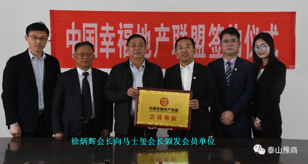 座谈结束,马会长和徐总代表双方在“中国幸福地产联盟”合作协议上签字,并授予泰安市瀚庭房地产开发有限公司为“中国幸福地产联盟会员单位”,颁发牌匾。