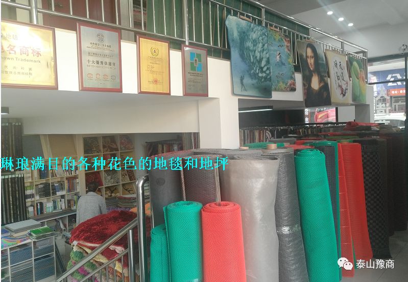 王欢 泰安河南商会副会长单位,王会长现有两个公司:济南凯翼尔地毯有限公司和泰安点个赞建材有限公司,分布在济南和泰安两地。其中地毯公司是国内著名企业——郑州华德地毯集团在山东省的总代理单位,在全省17地市都有分公司。王会长在光彩大市场的店面总面积260平方,经营的品种除了各种地毯、壁纸,还经营有环氧地坪、人造草坪等工程项目。